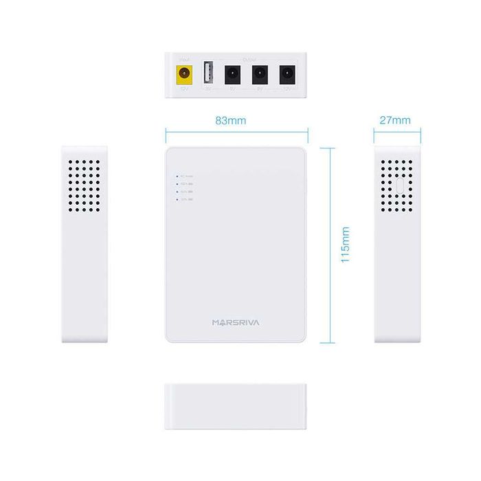 Блок безперебійного живлення для роутера Marsriva KP3, 5/9/12В, 18 Вт, 10000mAh, 1 x USB, 3 x DC