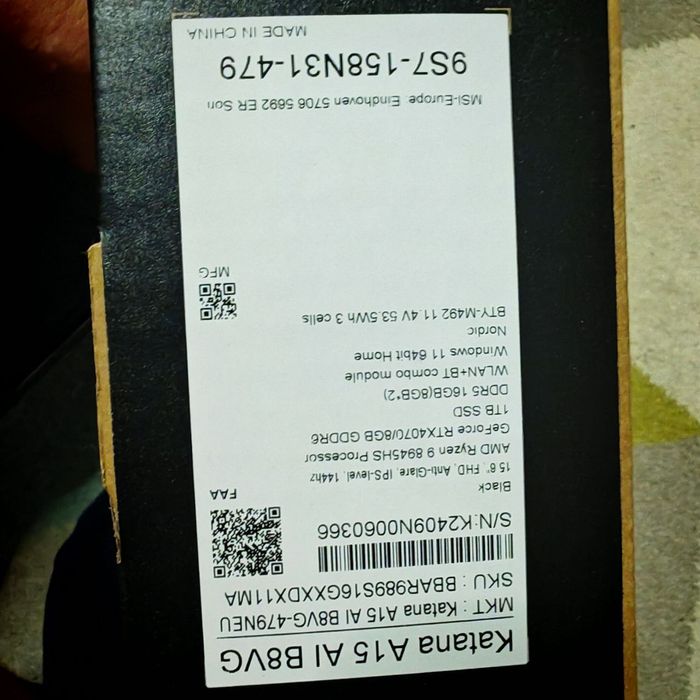 Продам ігровий ноутбук MSI Katana A15 AI B8VG rtx 4070 ryzen