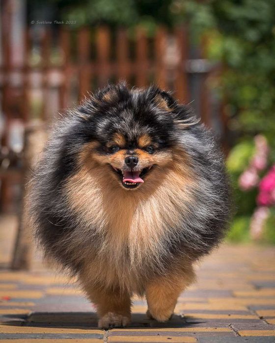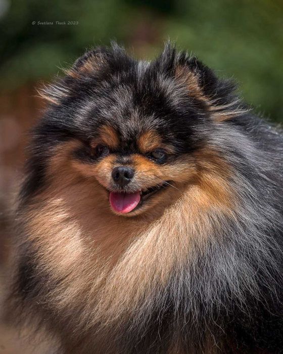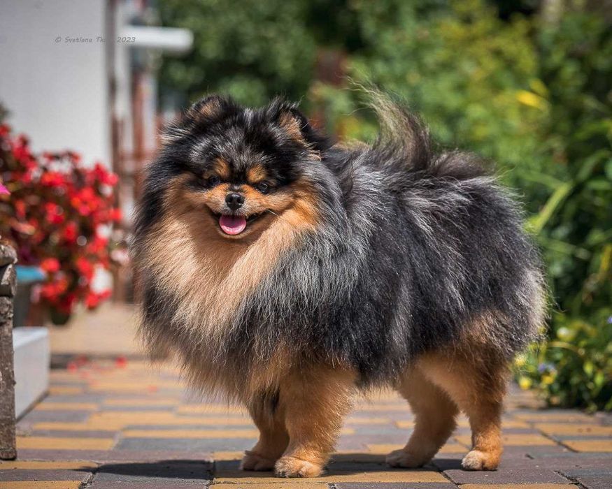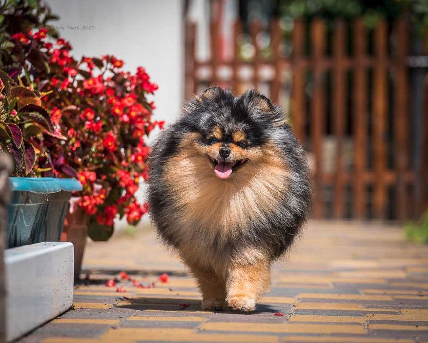 Розкішний кобель померанський шпіц мерле з підпалом