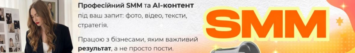 Працюю з бізнесами, яким потрібен зрозумілий результат у соцмережах: акуратний вигляд бренду, системний контент і матеріали, готові до публікації та реклами.