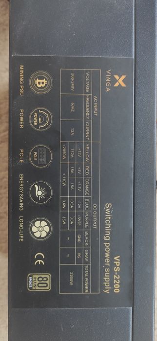 Vinga 2200W - дуже потужний блок живлення, створений спеціально для використання в майнінгових фермах, а також відмінно підходить для складання високопродуктивних ігрових платформ.