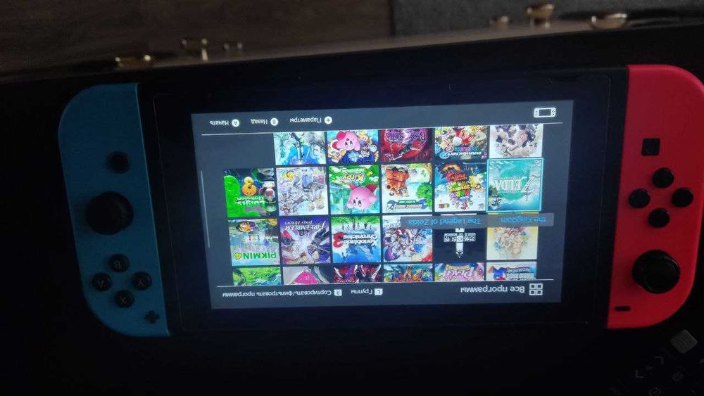 У комплекті: сама консоль, док-станція, тримач для джойконів, нунчаки для джойконів, необхідні кабелі та Switch Pro Controller. Джойкони не дрифтять та люфтять, все ідеально.