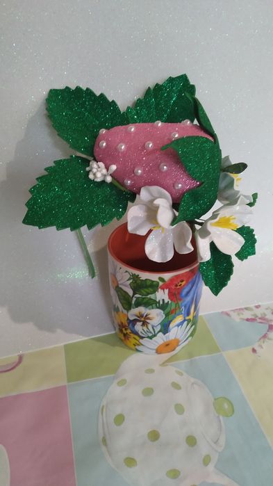 Продам обруч для образу Клубнички із глитерного фоамірана. Можно виконати у різному кольоровому поєднанні. Повністю ручна робота. Пересилаю.