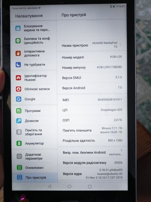 Марка планшету: Huawei