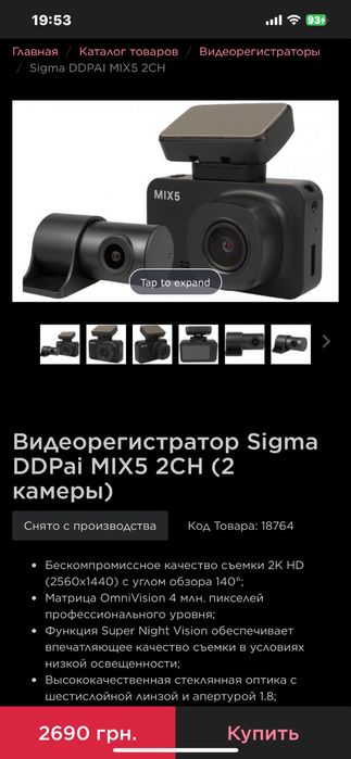 Видеорегистратор Sigma ddpai MIX5, с двумя камерами