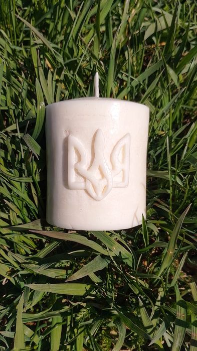 Свічка ручної роботи Тризуб з соєвого воску