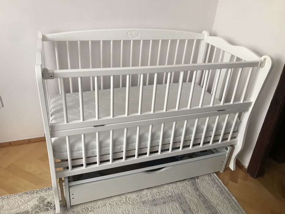 Дитяче ліжечко з маятником та шухлядою +матрац