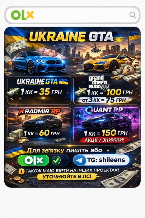 gta rp — Игровые аккаунты ⚡ Купить аккаунты в играх на OLX.ua ⭐ Покупайте лучшее на OLX Украина