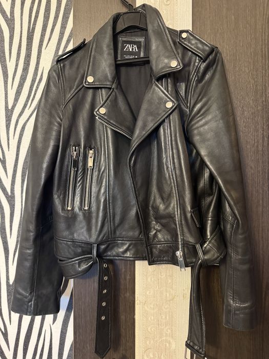 Кожаная косуха куртка Zara натуральная кожанка шкірянка