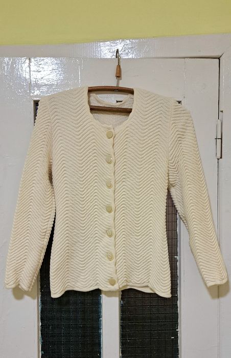 Жакет в'язаний Лляний молочного кольору, розмір S, 42-44