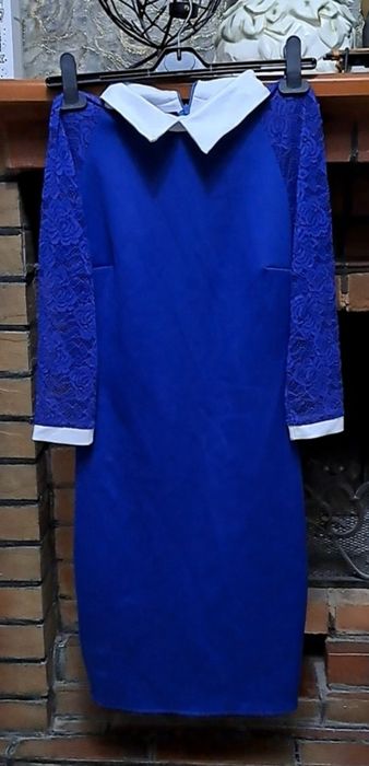 Сукня синя з мережевними рукавами