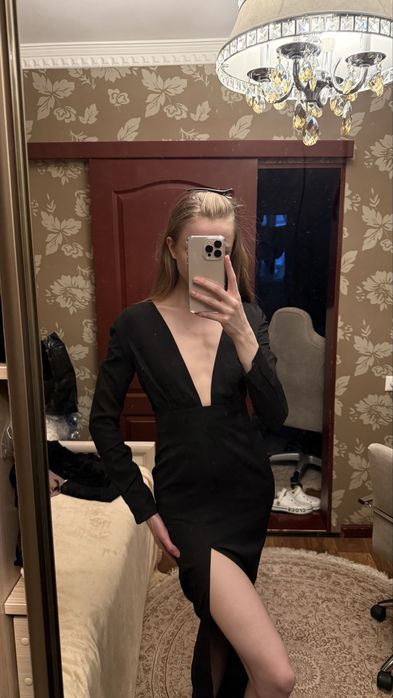 Черное платье с разрезом, новое