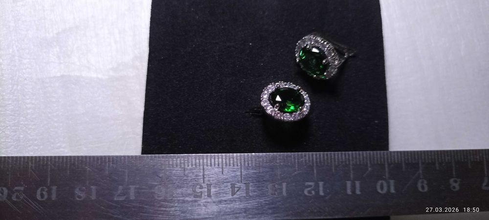 Срібні сережки в білому золоті зеленая яшма гранат турмалін нефріт