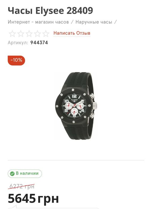 Продажа наручных часов Elysee Днепропетровская область ⭐ Купить наручные часы Elysee б/у и новые по выгодной цене ☝ Большой выбор моделей на OLX.ua!