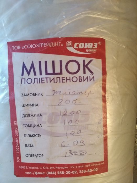 Мішки поліетиленові харчові