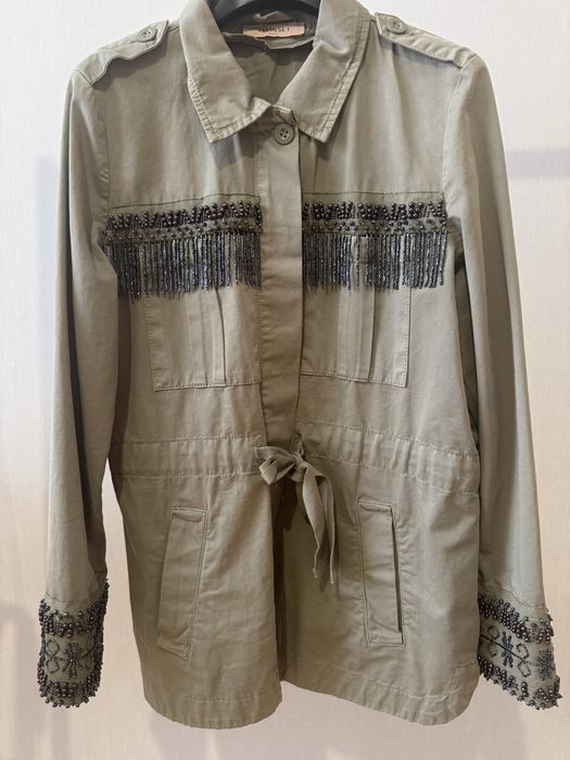 Брендова парка Twin-Set кольору хакі з бісером та бахромою, розмір ХS