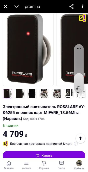 Электронный считыватель ROSSLARE AY-K6255 внешних карт MIFARE_13.56Mhz