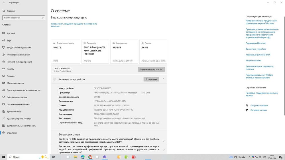 Комп'ютер AMD Athlon X4 750K / 8GB RAM / GTX 650 / SSD
