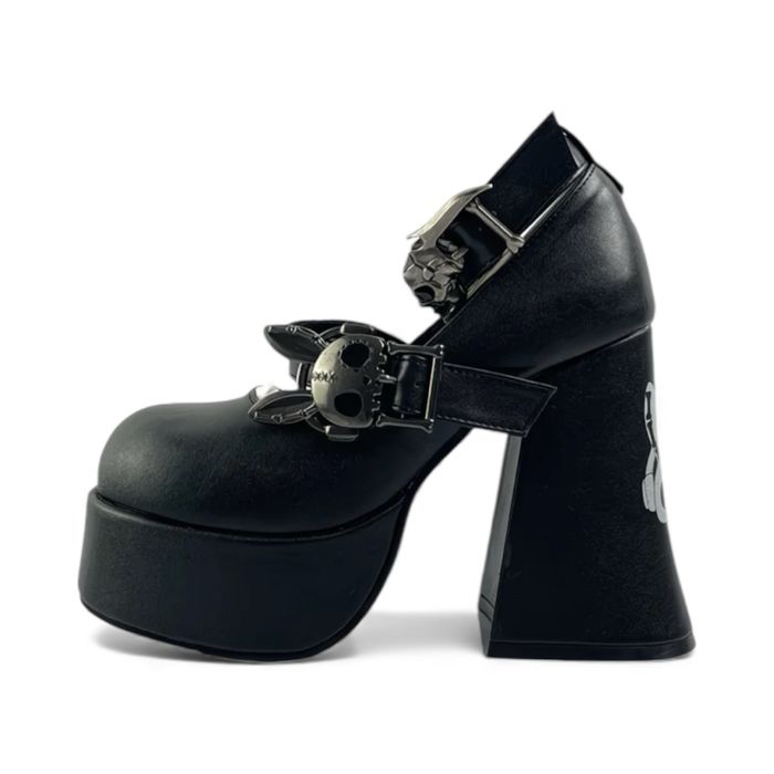 Високі шкіряні каблуки з кроликом на платформі