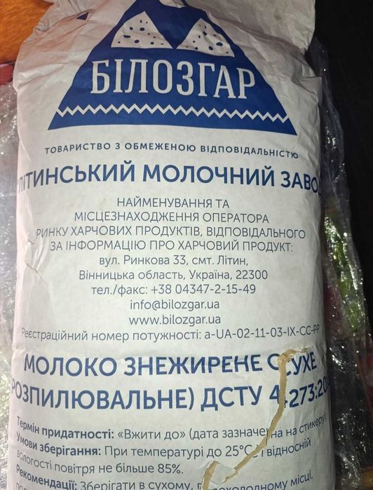 Сухе знежирене молоко 1,5%Білозгар