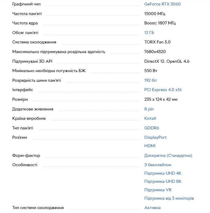 rtx 3060 12gb в Комплектуючі та запчастини