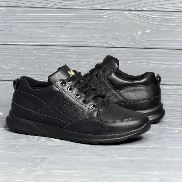 Мужские кожаные черные демисезонные харьковские кроссовки!!!