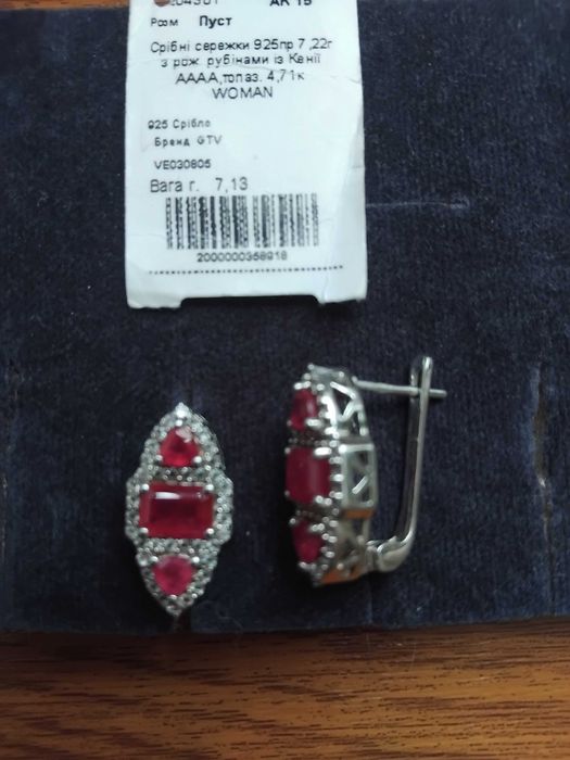 срібні сережки з рубіном в Ювелірні вироби