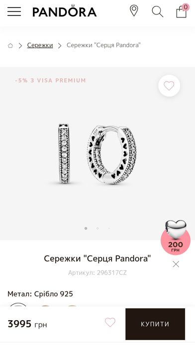 pandora сережки в Ювелірні вироби