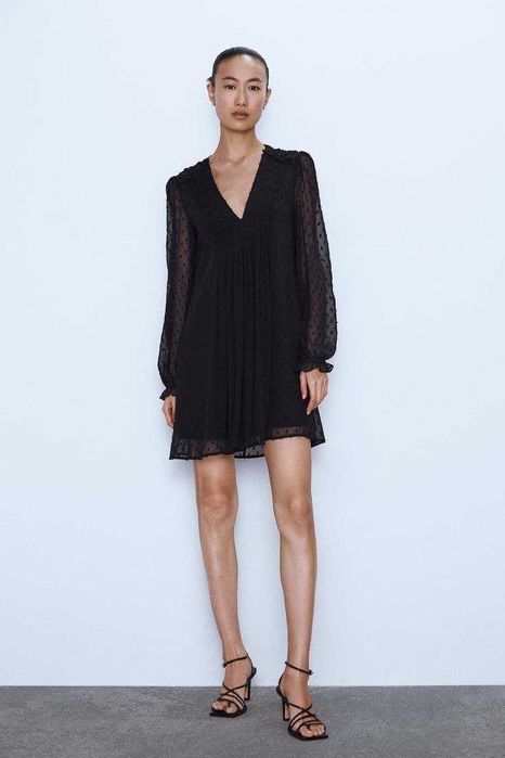 Чорна міні сукня з летящими рукавами від Zara