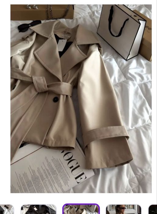 Короткий бежевый тренч с поясом Colins