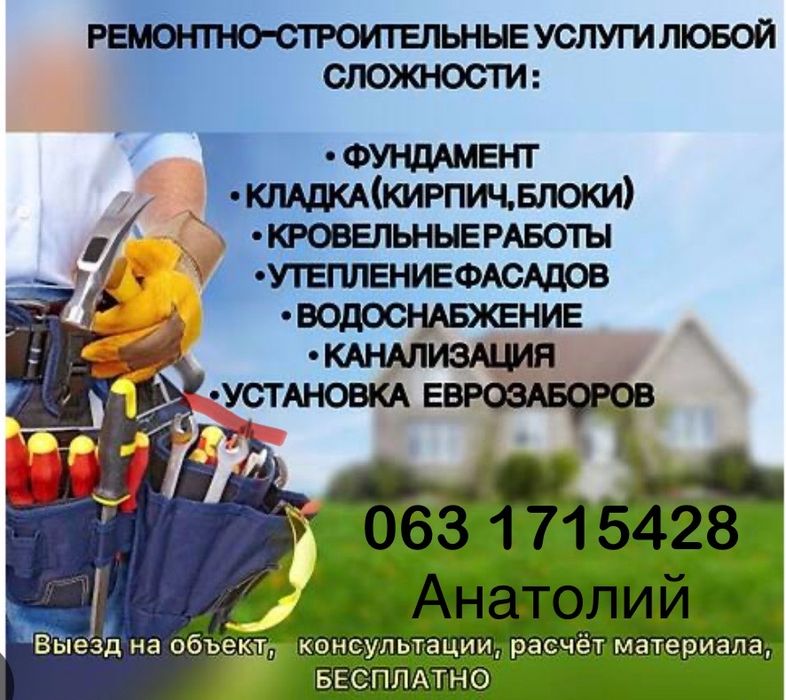 Услуги строительства и ремонта Днепровское ✔️ Объявления компаний и частных мастеров ☝ Найти бригаду для строительных работ можно на OLX.ua!