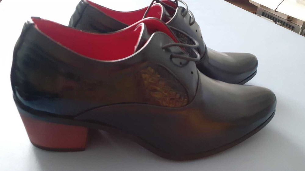 Розкішні, чоловічі туфлі на високих підборах.