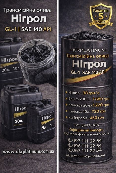 Нигрол Густой SAE 140 API GL-1 НІГРОЛ ГАРАНТИЯ - 5 лет