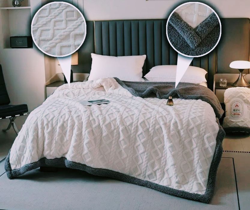 Новый теплый плюшевый плед двухсторонний покрывало двухспальное, евро
